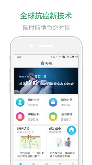 1、获取全球抗癌新技术并且通过app专业高效对接