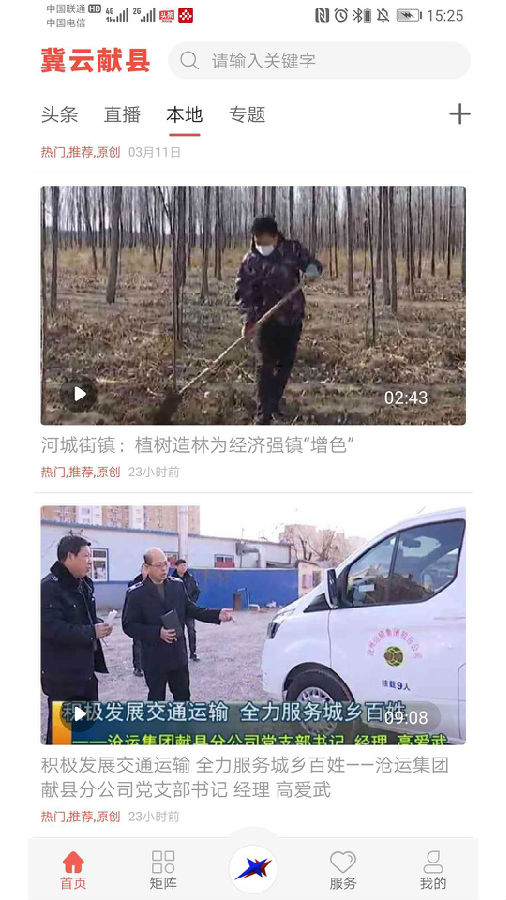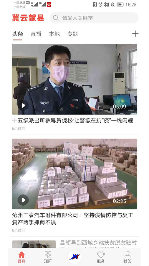 2、冀云献县观看新闻频道的新闻直播,同时浏览最新的头条和观点;