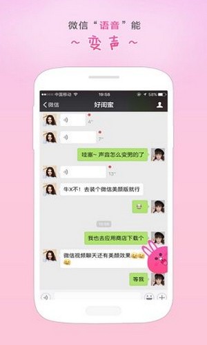 微信美颜版app是一款在微信的基础上推出的一款微信美颜版本,微信美颜版内置变声器、美颜工具、等非常多的美颜功能,堪称美颜版本的微信,此版本微信能够与官方编微信共存,是一款女生必备软件,喜欢此款微信美颜版app,想要下载使用的朋友欢迎下载使用!朋克部落、复古趴、旅行记、梦游仙境、波西米亚……所有时下最热ICON,聚合在此!