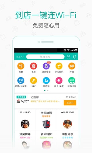 精致美食,旅游团购,酒店预订,打折机票,特惠电影,在线买单,外卖立减,团购优惠根本停不下来;