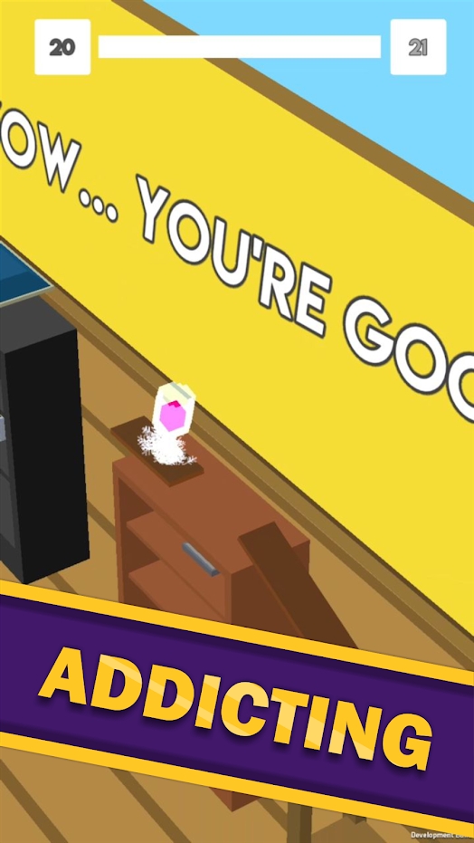 Flipper Glass游戏安卓版操作简单易上手,一根手指就能控制,快节奏点击跑酷游戏,控制玻璃杯敏捷跳跃行走,可以满足喜欢玩跑酷的需求,而且确实让人上瘾!简单直观的控制,跑酷的路面不是非常平整的,有的是桌子或者椅子很弱其他种类的柜台,高度不一样,滑行的 同时需要跳跃到另一个场地,你要保持杯子的平稳。