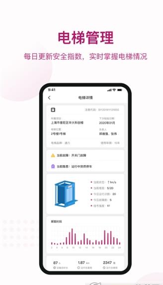 爱佳梯物联网软件为电梯安全及信息化管理提供移动智能化的解决方案;实时绑定所有电梯设备,可以统一管理电梯的运行情况,实时进行电梯维保,确保使用人员的安全,拥有详细的安全指数和情况了解,快速解决相关问题,电梯发生 急停,自动播放语音安抚:“爱佳梯温馨提醒:电梯已进行停梯保护,维保人员已经向您赶来,请不要倚靠电梯门或强行扒门,以免造成不必要的伤害,电梯有通风系统,请您不要慌张,感谢您的配合。需要的伙伴,麦氪派下载即可使用哦!