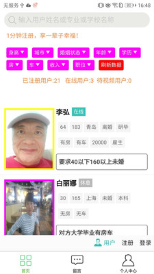 3.这里专门设计了线上相亲角,每个人可以在这里自主的发展自己的相亲对象;