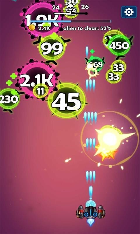 2、不断升级你的武器,去击杀更多的病毒,简单的过程中充满了无限的乐趣。