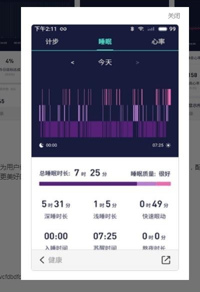 2、记录每天的睡眠情况,图文展示每天的深睡时间、