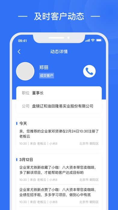 客户沟通过程全记录,随时回溯查看历史跟进短信和通话