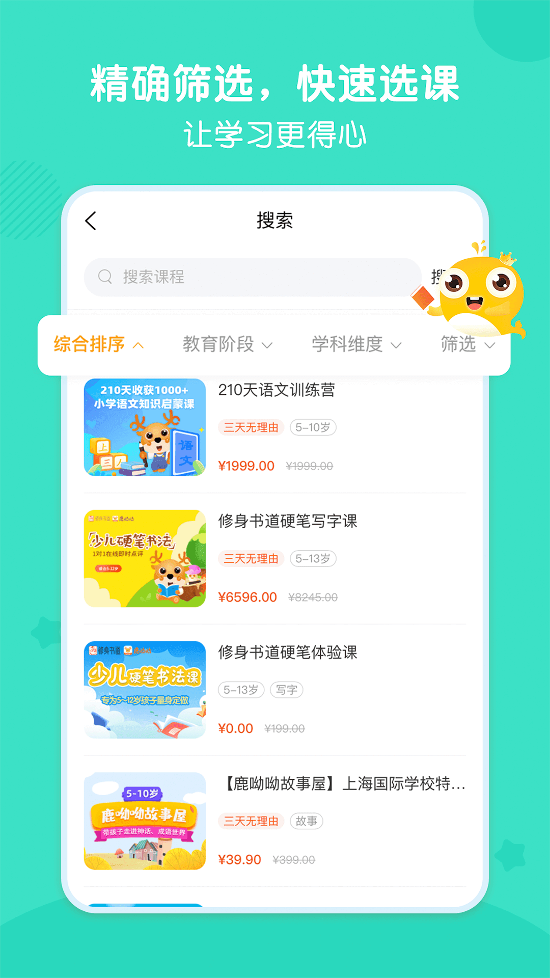 3.为家长用户提供了不同的价格区间,可以满足家长的需求;