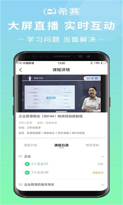 1、在上面有着各种不同的视频资料以及课程方面的内容,让用户在手机上面得到最为充分的训练,通过手机和这款软件让自考的用户准备上面更加的充分,大大的增高用户的自考通过率。