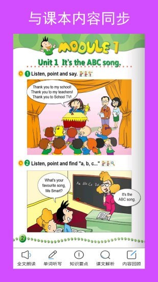 2、和课本相结合,同步最新教材,同步点读,方便孩子课前预习、课后复习。