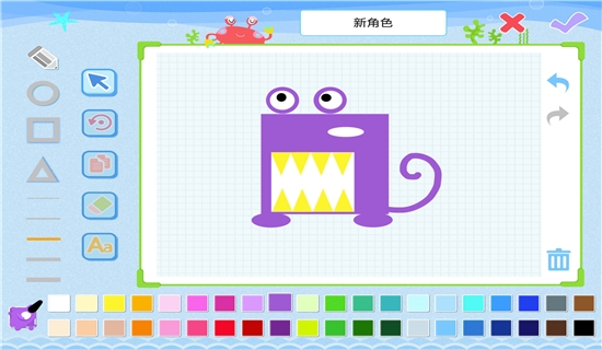 2.画板工具,让孩子们自由发挥想象,设计编程需要的背景和素材;