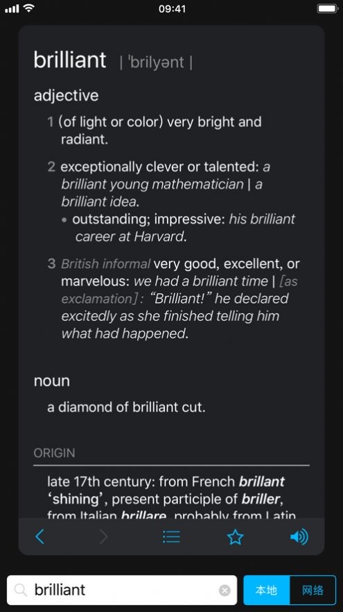 2. 离线翻译:海量离线词库,提供了英文、短句解释,没有网络也能查词和翻译。