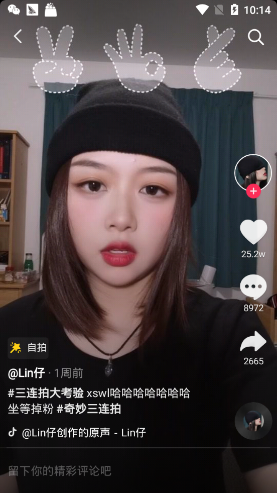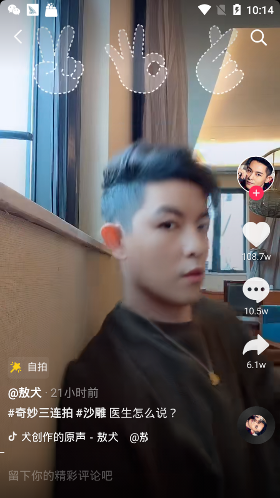 3.比手势的特效是抖音里自带的,大家安装了抖音短视频就可以快速找到。