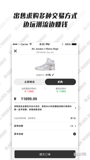 潮流黑市是优质的潮鞋购买和买家交易服务平台。平台提供丰富的潮鞋资讯,线上正品购买功能,同时支持买家自由交易,选择优质实惠的球鞋。感兴趣的用户欢迎下载使用。