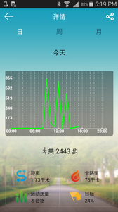1、运动数据记录:准确记录每天行走的步数及卡路里让您时刻了解身体运动状况,还支持设定运动目标。
