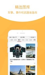 图片:大图的形式展现每日军事类图片故事,包括武器装备图片、突发事件图片、军队军人女兵的形象图片。也有新的社会图片故事、娱乐图片故事。