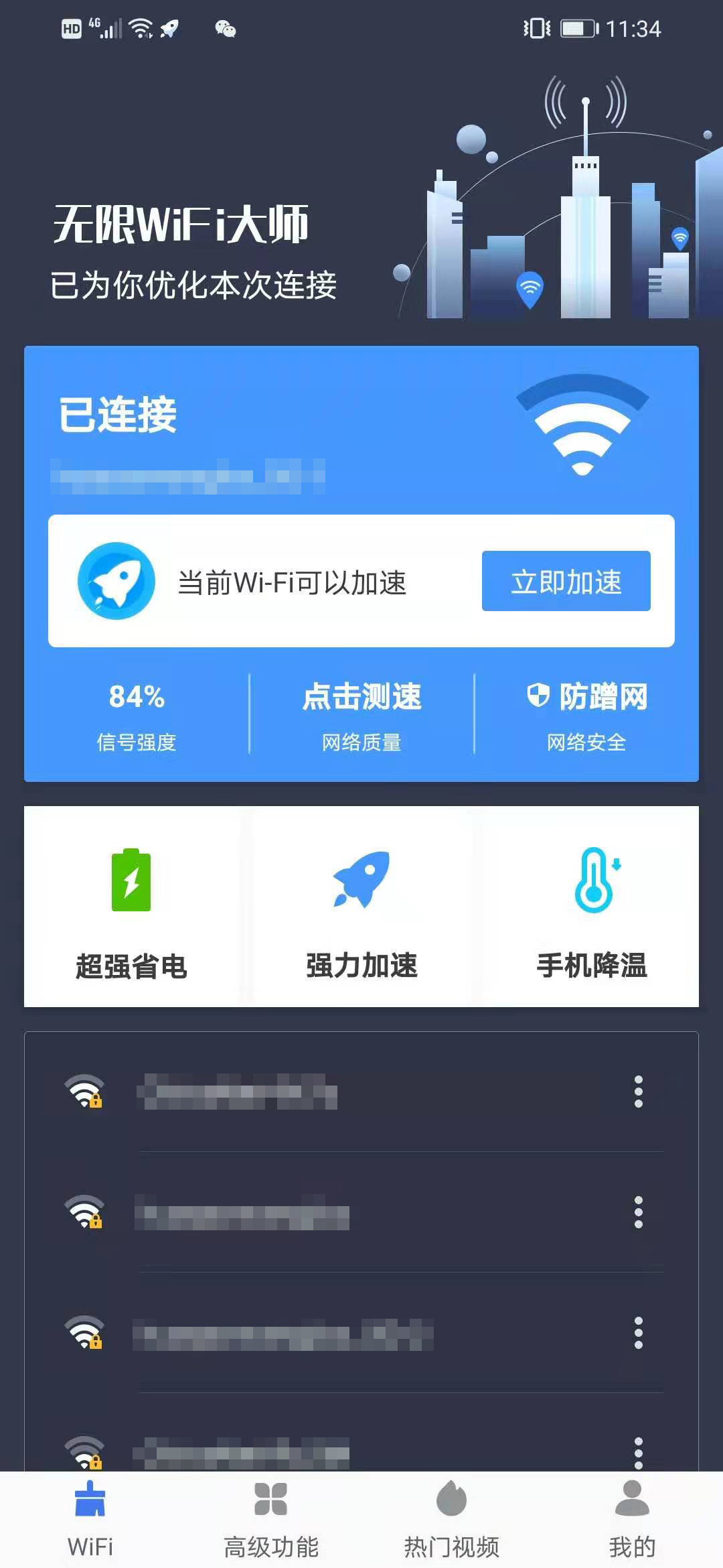 无限WiFi大师软件帮助您检测连接网络的安全状态,主动防范WiFi风险,保护您的信息安全。