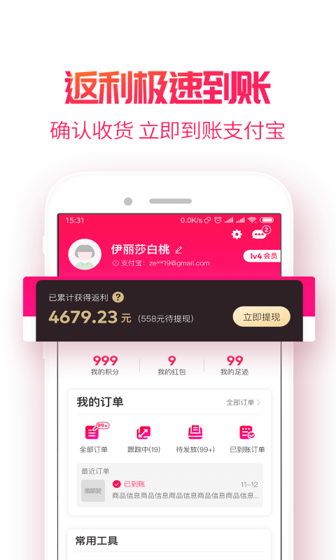 4、9块9包邮:精选商品,低价超值,9块9包邮还返利!