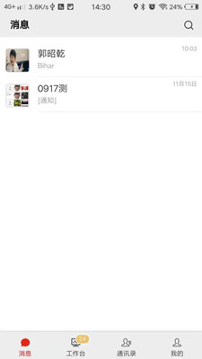 3、每天都可以在工作台面上收到通知,会议,任务,同时自己也是可以上传素材的。