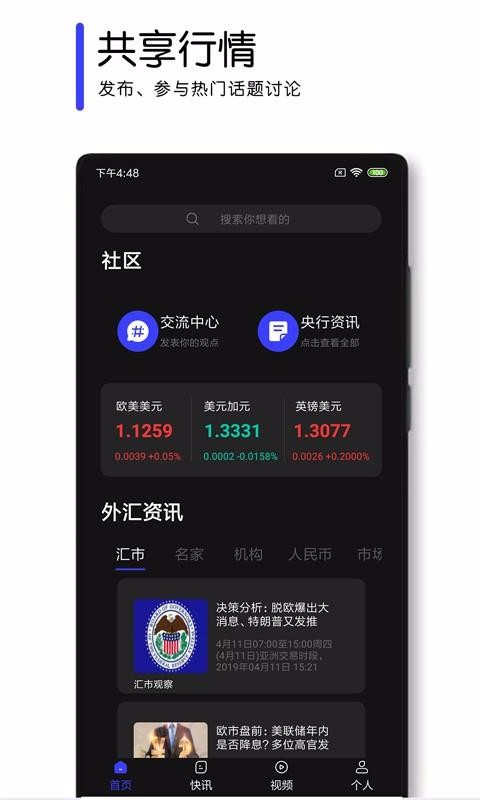外汇资讯软件app主要是为外汇投资者带来投资产品资讯内容,方便了解业界动态,学习投资技巧,利用少量资产即可赚取丰厚收益;在这里为你提供最新的金融市场行情,在这里全方位教授投资知识,让你学会投资理财,在这里你还能在论坛与其他投资者进行交流,外汇交易资讯,外汇资讯、财经日历、财经视频等内容都有带来,在刷看投资动态内容的时候可以灵活切换查看,帮助每一位喜欢外汇产品投资的朋友轻松把握投资业的变化情况,更精准的制作投资方案,控制投资风险,将其降到最低,让您的投资资产稳健增值;是投资理财的必备手机软件!
