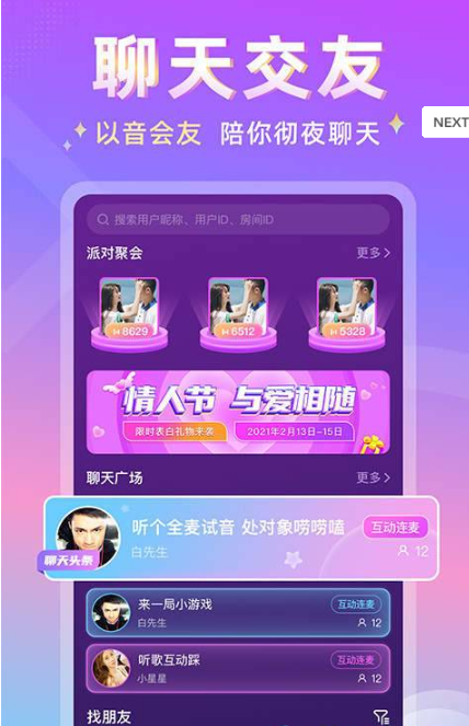 1、语音派对,女神、男神、点唱、陪玩、电台、娱乐全部都有;