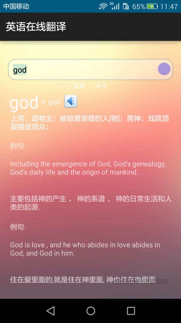英语在线翻译app是一款英语学习软件,英语在线翻译app为用户提供便捷的英语在线翻译功能,帮助用户快速了解英文意思,帮助用户轻松学英语,你还在为自己学习英语、不懂英文意思而感到烦恼吗?快使用《英语在线翻译》,有了它,学习英语轻松搞定,提供了单词、短句、甚至是文章的同比解释,支持中英互译。是你学习英语必备工具。