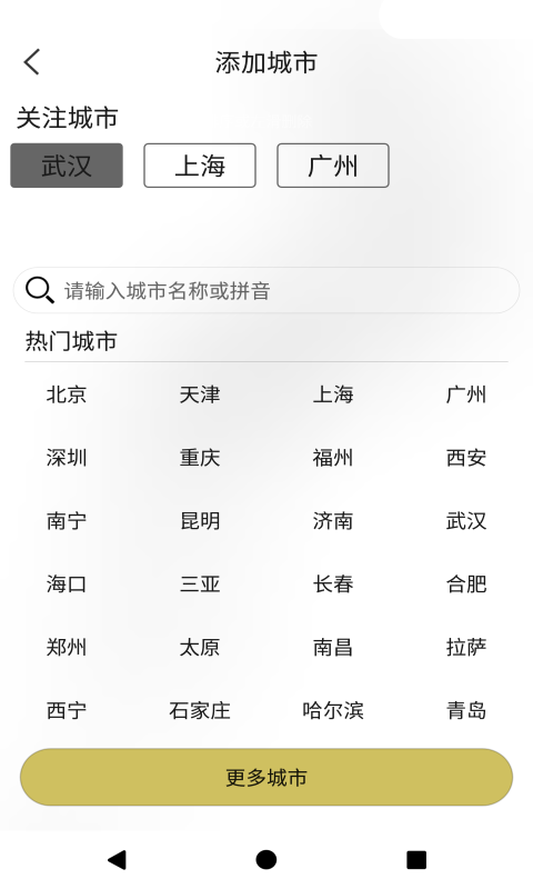 支持添加多个自己常关注的城市,在首页可以直观查看到该城市天气;