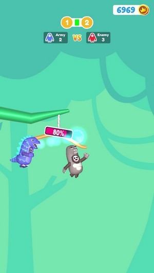 1、控制各种小动物进行作战,在树枝上面灵活的摇摆来瞄准目标。