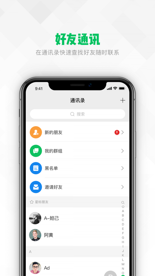 在通讯录快速查找好友随时联系,尽享便捷聊天;