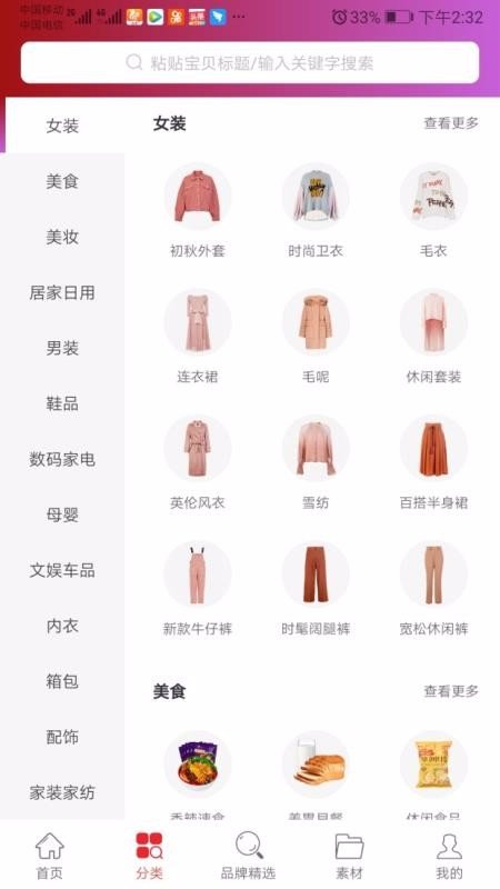 在分类界面中,你可以自由挑选分类,找到自己喜欢的商品;