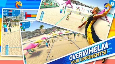 1、一款采用3D引擎技术打造海滩排球玩法趣味游戏;