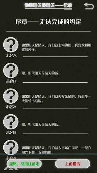 如果明天是晴天是一款文字剧情手游,游戏讲述了在一个总下雨的城市里一位有超能力的高中生紫樱等人的故事,这是一个文字冒险类游戏,讲述的是在一座一直下着雨的城市里,他与她们的故事。背负着家族希望的少女、背负着对死去亲人思念的少女、背负着孤独的少女、追寻着英雄背影的少女,少年与她们之间究竟会发生怎样的故事?快来下载吧!