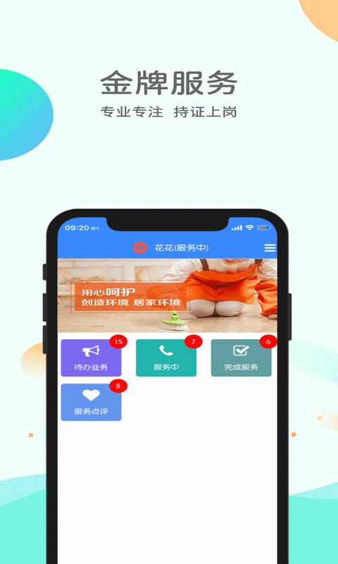 【服务人员】代接订单、服务中订单、完成订单、服务点评等相关内容管理;