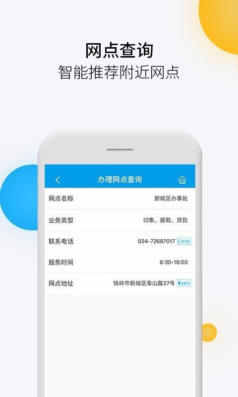 该应用与铁岭中心各个业务网点无缝对接,可以通过地图方式查询附近服务网点,不论线上还是线下都能满足你的需求;有了它你还可以更简单的办理业务,线上就能办理业务了,提交申请还能有效告别排队等待,减少不必要的办事流程,解决你的难题,需要的话就来下载吧。
