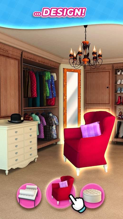 1、实现玩家的设计师梦想,自由摆放家具,还能获得各种各样的装饰物,来打造理想中的家庭;