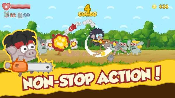 1、游戏的主角是一个愤怒的猪培根,玩家需要操控着角色将来袭的怪物全部击败。