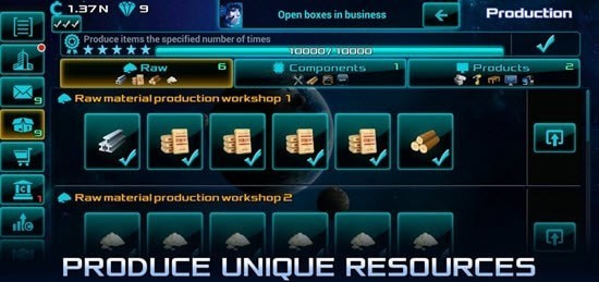 3、在不同的方向开展业务,采矿,食品生产,奢侈品供应等,升级您的业务并创建您的太空业务帝国。