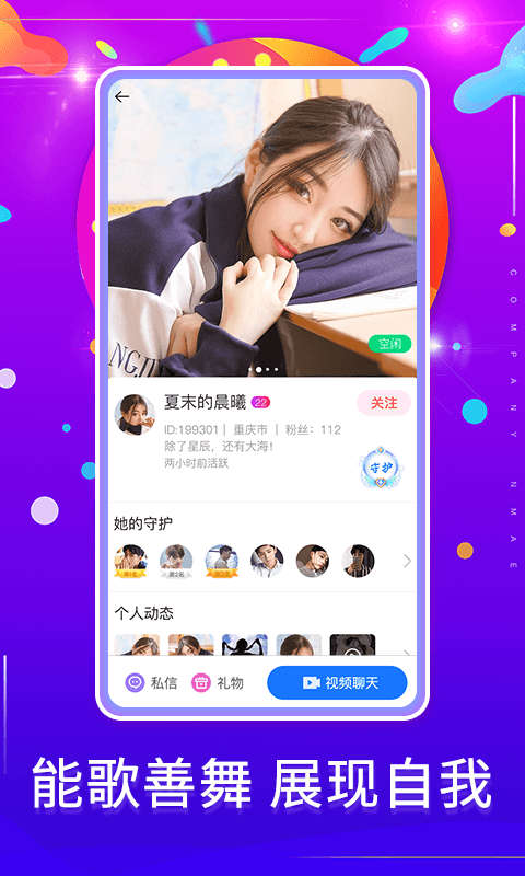 2、花样聊天,除了视频之外可以语音以及文字、直播聊天;