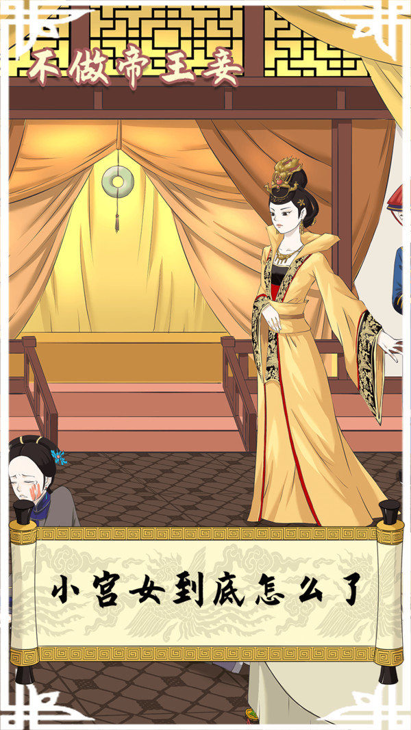 1、游戏发生在皇宫当中,玩家根据剧情的发展来选择不同的路线,结局也不一样。