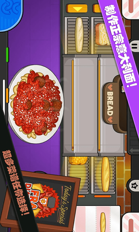 玩家可以学习制作意大利面,并且来按照游戏中顾客来完成各种美食;
