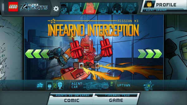 乐高超级特工 LEGO ULTRA AGENTS:乐高出品的游戏其内容和玩法类型涉及面还是很广的,当中也不乏一些电影改编作品,主题归纳起来大多数都是救人救火救美女,真是中二的不能再中二了,游戏性嘛只能说参差不齐。乐高超级特工 LEGO ULTRA AGENTS是乐高旗下一款以特工为主题的休闲射击游戏,游戏的故事分量比起游戏的分量来似乎还要更重,大部分的时间内玩家可以在游戏中以收听和观看连环漫画的形式来了解游戏每个小章节故事的发展和走向,时不时地插入几个需要玩家选择工具进行调查的场景,既休闲又益智。游戏的操作也十分简单,不管是看故事的部分还是玩游戏的部分,都只需要简单地配合屏幕出现的箭头进行滑动和点击即可完成。