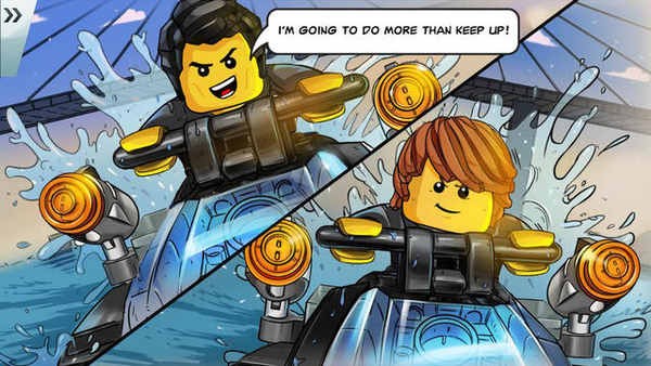 游戏主角是乐高里的积木人,大部分时间玩家是在听故事,看剧情漫画,了解故事的发展和走向,有时候又需要玩家来调查。游戏的操作十分简单,点击屏幕上的箭头或者滑动。每个章节都需要收集漫画的信息,在射击的时候要尽可能的快速的消灭敌人。你可以把这个游戏理解为会说话的连环画。每个故事章节中玩家需要使用道具认真收集在漫画中出现的所有信息,在射击游戏中也要尽可能以最快最完美的打法来打败敌人,只有这样每个故事章节的评分才能拿到最高,才能解锁出当前章节人物的积木组合攻略,非常实用。