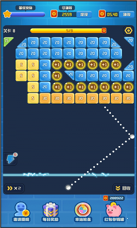 利用弹球的弹射角度去清除数字方块,努力的获取高分;
