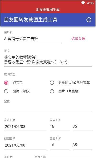 2、可以快速生成朋友圈文案信息,截图内容可以自定义修改;