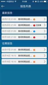 体征趋势:通过趋势图和数据列表的方式展现用户的历史数据,并提供各参数按天、周或月的统计数据。