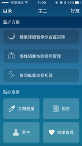 实时测量:“云卫康”连接舒气通设备或者其它设备后,可从App端发起实时测量,进行体征数据的采集和展示。
