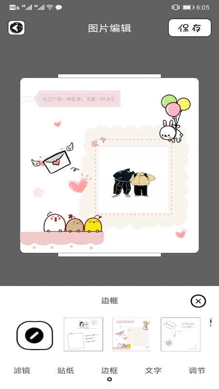 支持剪裁、滤镜、涂鸦、旋转、文字、贴纸等;