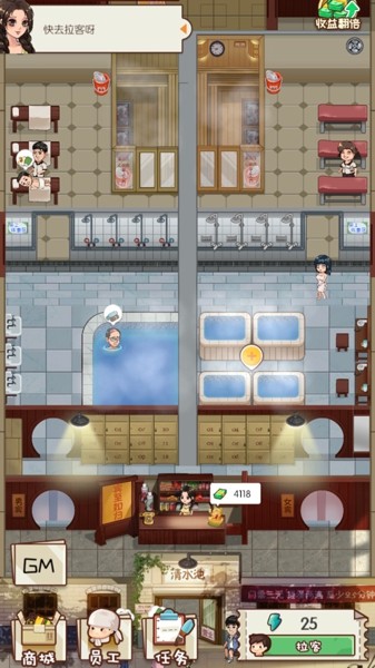 2、有着丰富的经营养成要素,玩家可以从多个方面入手,经营自己的澡堂;