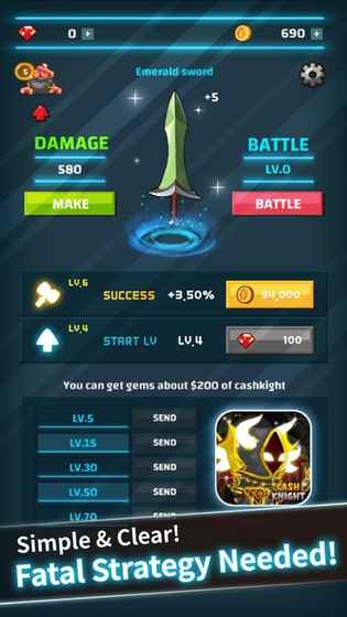 1、不只是简单的剑升级〜如果你成功升级,获得最强的剑!但!卖剑什么时候卖。获得大量的硬币! +轻松杀死怪物!
