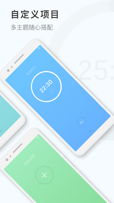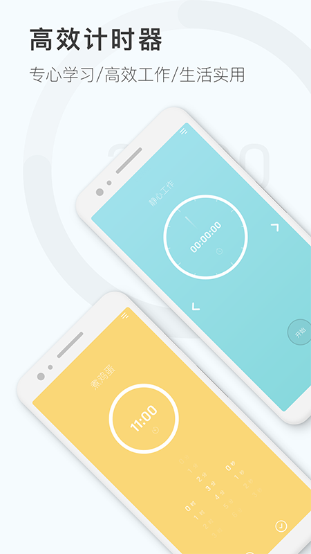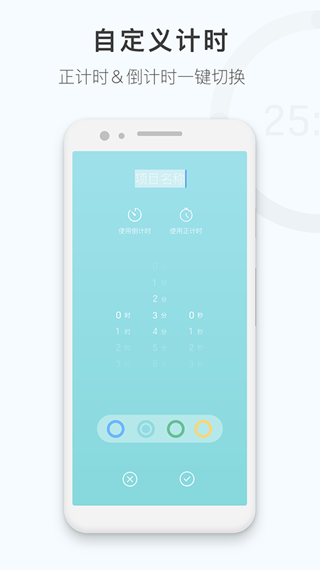 【自定义计时】正计时/倒计时一键切换,专注蓝、护眼绿、舒缓黄等多款背景皮肤颜色供您选择;