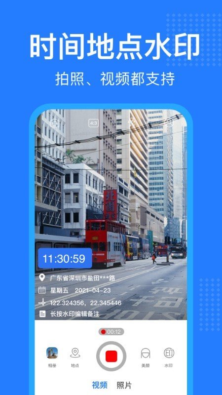 天气、地点、时间、分贝、海拔、速度,智能水印自动添加到照片上;